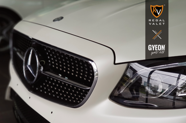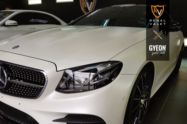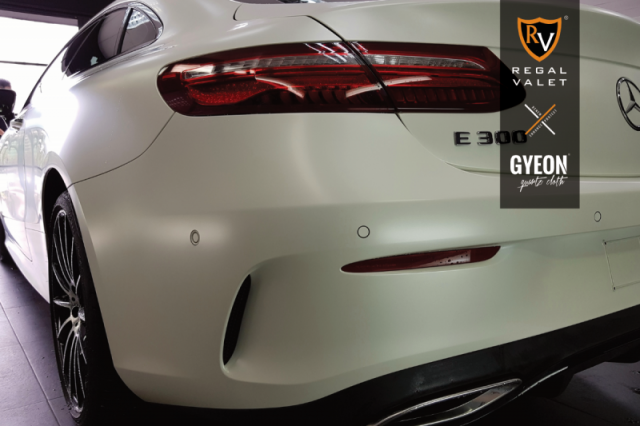 This #MercedesBenz #E300 #Coupe #Edition1 with its matte designo cashmere white magno paint came in for a rear bumper respray after suffering from a little misadventure on the roads. Upon completion of the new paintjob by #RV #Sprayworks, it was sent back to the studio for detailing works and the application of GYEON MATTE coating onto the paintwork, including other specialist coatings for all the other surfaces to ensure everything is thoroughly protected and kept looking new.